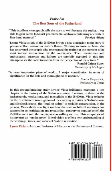 In this ground- breaking study, Lynne Viola - the first Western scholar to gain access to the Soviet state archives on collectivization - brilliantly excavates a lost chapter in the history of the Stalin revolution. This book affords an intimate look at the campaign of the '25,000ers', the industrial workers who were sent into the Soviet countryside to implement collectivization during the 1930s.