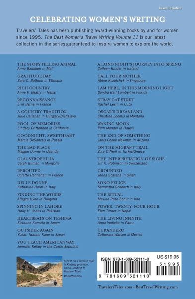 Since publishing the original edition of A Woman's World in 1995, Travelers' Tales has been the recognized national leader in women's travel literature, and with the launch of the annual series The Best Travel Writing in 2004, the obvious next step was an annual collection of the best women's travel writing of the year. This title is the eleventh in that seriesThe Best Women's Travel Writingpresenting stimulating, inspiring, and uplifting adventures from women who have traveled to the ends of the earth to discover new places, peoples, and facets of themselves. The common threads connecting these stories are a female perspective and fresh, compelling storytelling to make the reader laugh, weep, wish she were there, or be glad she wasn't. The points of view and perspectives are global, and themes are as eclectic as in all of our books, including stories that encompass spiritual growth, hilarity and misadventure, high adventure, romance, solo journeys, stories of service to humanity, family travel, and encounters with exotic cuisine. The 31 true travel stories in this year's collection are, as always, wildly diverse in theme and location. They tell of places like California and Cuba, Switzerland and Singapore, Iran and Iceland, Montana and Mexico and Mongolia and Mali, our own back yards and some of the farthest, most extreme corners of the world. They are the personal stories we can't help but collect when we travel, stories of reaching out to embrace the unfamiliar and creating cross-cultural connections while learning more about ourselves. In The Best Women's Travel Writing, Volume 11, you will: * go scuba diving with sharks in Palau * cook for Syrian refugees in Greece * be the first American to play pro basketball in the Czech Republic * anger a nun in Ethiopia * go whitewater rafting on the Nile in Uganda * help slaughter a pig in Hungary * realize your limits of filial piety in Singapore * seek healing at the hands of a witchdoctor in Mexico * feast on rancid food in Iceland * avoid hypothermia by spooning in Mongolia * fall in love in Nepal ... and much, much more.