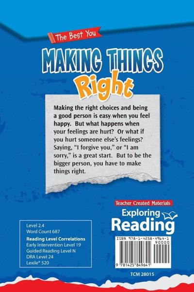 Making the right choices and being a good person is easy when you feel happy. But what happens when your feelings are hurt? Or what if you hurt someone else's feelings? Saying "I forgive you" or "I am sorry" is a great start. This full-color nonfiction reader will engage students in reading while introducing them to new vocabulary terms and concepts. Important text features include a glossary and a table of contents to develop students' comprehension and literacy skills. This book aligns with national and state standards and features exciting TIME For Kids content to keep grade 2 students engaged in learning.Hinweis: Dieser Artikel kann nur an eine deutsche Lieferadresse ausgeliefert werden.