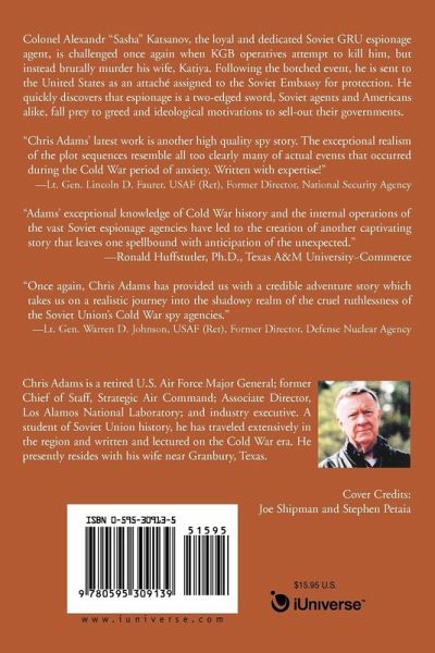 Colonel Alexandr "Sasha" Katsanov, the loyal and dedicated Soviet GRU espionage agent, is challenged once again when KGB operatives attempt to kill him, but instead brutally murder his wife, Katiya. Following the botched event, he is sent to the United States as an attaché assigned to the Soviet Embassy for protection. He quickly discovers that espionage is a two-edged sword, Soviet agents and Americans alike, fall prey to greed and ideological motivations to sell-out their governments. "Chris Adams' latest work is another high quality spy story. The exceptional realism of the plot sequences resemble all too clearly many of actual events that occurred during the Cold War period of anxiety. Written with expertise!" --Lt. Gen. Lincoln D. Faurer, USAF (Ret), Former Director, National Security Agency "Adams' exceptional knowledge of Cold War history and the internal operations of the vast Soviet espionage agencies have led to the creation of another captivating story that leaves one spellbound with anticipation of the unexpected." --Ronald Huffstutler, Ph.D., Texas A&M University~Commerce "Once again, Chris Adams has provided us with a credible adventure story which takes us on a realistic journey into the shadowy realm of the cruel ruthlessness of the Soviet Union's Cold War spy agencies." --Lt. Gen. Warren D. Johnson, USAF (Ret), Former Director, Defense Nuclear Agency