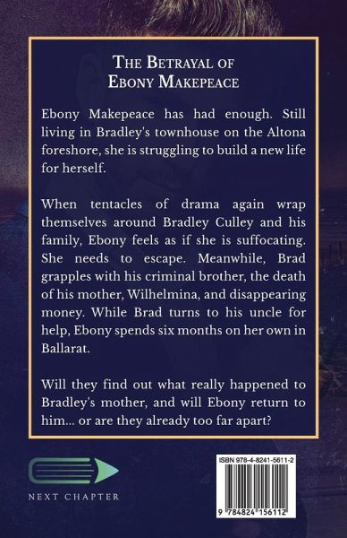 Ebony Makepeace has had enough. Still living in Bradley's townhouse on the Altona foreshore, she is struggling to build a new life for herself. When tentacles of drama again wrap themselves around Bradley Culley and his family, Ebony feels as if she is suffocating. She needs to escape. Meanwhile, Brad grapples with his criminal brother, the death of his mother, Wilhelmina, and disappearing money. While Brad turns to his uncle for help, Ebony spends six months on her own in Ballarat. Will they find out what really happened to Bradley's mother, and will Ebony return to him... or are they already too far apart?…mehr