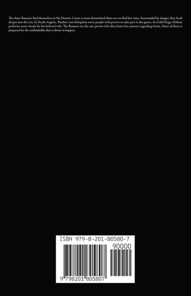 The three Runners find themselves in Sin Detroit. Cassie is more determined than ever to find her sister. Surrounded by danger, they head deeper into the city. In Death Angeles, Thadius' men bring him more people with powers to take part in the games. In Gold Diego, Hobart performs more rituals for his beloved wife. The Runners see the one person who they know has answers regarding Gusta. None of them is prepared for the unthinkable that is about to happen.