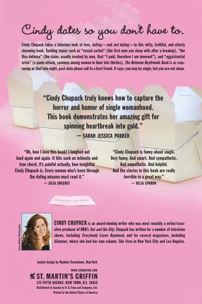 Cindy Chupack takes a hilarious look at love, dating-and not dating-in this witty, truthful and utterly charming book. Tackling topics such as "sexual sorbet" (the first man you sleep with after a breakup), "the VISA defense" (the claim, usually invoked by men, that 'I paid, therefore I am innocent') and "eggsistential crisis" (a panic attack, common among women in their late thirties), The Between Boyfriends Book is as reassuring as that late-night post-date phone call to a best friend. It says: you may be single, but you are not alone. "Oh, how I love this book! I laughed out loud again and again. It hits such an intimate and true chord, it's painful actually, how insightful Cindy Chupack is. Every woman who's been through the dating miasma must read it." - Julia Sweeney "Cindy Chupack is funny about single. Very funny. And smart. And sympathetic. And empathetic. And helpful. And the stories in this book are really horrible in a great way." - Delia Ephron