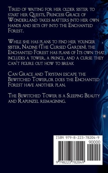 Tired of waiting for her older sister to start her Quests, Princess Grace of Wonderland takes matters into her own hands and sets off into the Enchanted Forest. While she has plans to find her younger sister, Nadine (The Cursed Garden), the Enchanted Forest has plans of Its own that includes a tower, a prince, and a curse they can't figure out how to break. Can Grace and Trystan escape the Bewitched Tower, or does the Enchanted Forest have another plan? The Bewitched Tower is a Sleeping Beauty and Rapunzel reimagining.