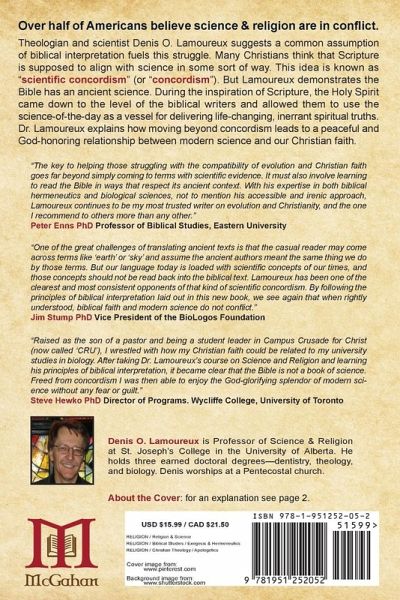 Is the Bible a book of science?Over half of Americans believe science and religion are in conflict. Theologian and scientist Denis O. Lamoureux suggests that a common assumption of biblical interpretation fuels this struggle. Many Christians think Scripture is supposed to align with science in some sort of way. This idea is known as "scientific concordism" (or simply "concordism"). But Lamoureux demonstrates that the Bible has an ancient science. During the inspiration of Scripture, the Holy Spirit came down to the level of the biblical writers and allowed them to use the science-of-the-day as a vessel for delivering life-changing, inerrant spiritual truths. Dr. Lamoureux explains how moving beyond concordism leads to a peaceful and God-honoring relationship between modern science and our Christian faith.