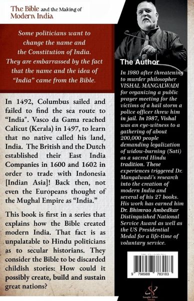 Some politicians want to change the name "India." They are embarrassed by the fact that the name and the idea of "India" came from the Bible. In 1492, Columbus sailed and failed to find the sea route to "India". Vasco da Gama reached Calicut (Kerala) in 1497, to learn that no native called his land, India. The British and the Dutch established their East India Companies in 1600 and 1602 in order to trade with Indonesia [Indian Asia]! Back then, not even the Europeans thought of the Mughal Empire as "India." This book is first in a series that explains how the Bible created modern India. That fact is as unpalatable to Hindu politicians as to secular historians. They consider the Bible to be discarded childish stories: How could it possibly create, build and sustain great nations?