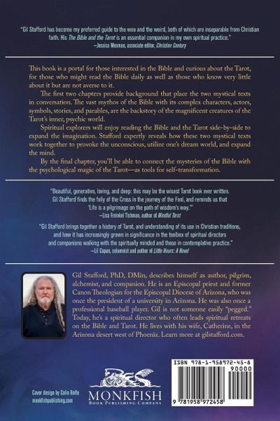 "This book is a portal for those interested in the Bible and curious about the Tarot, for those who might read the Bible daily as well as those who know very little about it but are not averse to it. The first two chapters provide background that place the two mystical texts in conversation. The vast mythos of the Bible with its complex characters, actors, symbols, stories, and parables, are the backstory of the magnificent creatures of the Tarot's inner, psychic world. Spiritual explorers will enjoy reading the Bible and the Tarot side-by-side to expand the imagination. Stafford expertly reveals how these two mystical texts work together to provoke the unconscious, utilize one's dream world, and expand the mind. By the final chapter, you'll be able to connect the mysteries of the Bible with the psychological magic of the Tarot-as tools for self-transformation"--