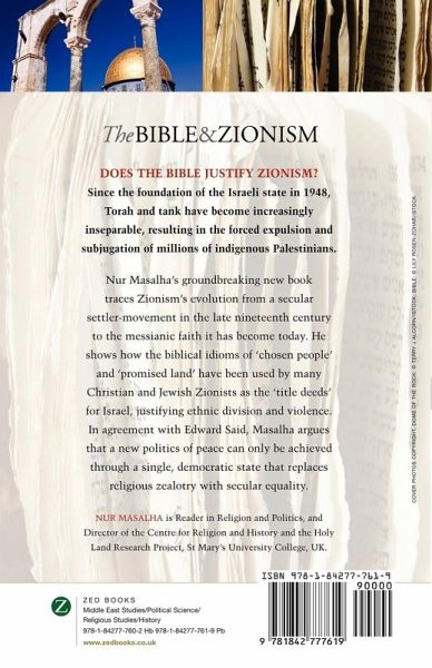 Does the bible justify Zionism? Since the foundation of the Israeli state in 1948, Torah and tank have become increasingly inseparable, resulting in the forced expulsion and subjugation of millions of indigenous Palestinians. Nur Masalha's groundbreaking new book traces Zionism's evolution from a secular, settler movement in the late 19th century, to the messianic faith it has become today. He shows how the biblical language of 'chosen people' and 'promised land' has been used by many Christian and Jewish Zionists as the 'title deeds' for Israel, justifying ethnic division and violence. With Edward Said, Masalha argues that a new politics of peace can only be achieved through a single, democratic state, which replaces religious zealotry with secular equality.