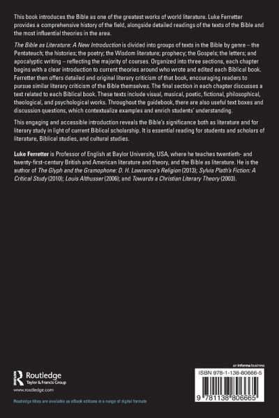 The Bible as Literature: A New Introduction is divided into groups of texts in the Bible by genre - the Pentateuch; the histories; the poetry; the Wisdom literature; prophecy; the Gospels; the letters; and apocalyptic writing - reflecting the majority of courses. Organized into three sections, each chapter begins with a clear introduction to current theories around who wrote and edited each Biblical book. Ferretter then offers detailed and original literary criticism of that book, encouraging readers to pursue similar literary criticism of the Bible themselves. The final section in each chapter discusses a text related to each Biblical book. These texts include visual, musical, poetic, fictional, philosophical, theological, and psychological works. Throughout the guidebook, there are also useful text boxes and discussion questions, which contextualize examples and enrich students' understanding.