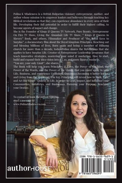 The Book will help you learn Principles & Laws, the Power of the Mind, the Power of the Words, and the Power of the Vision, that you could apply in your Life, Business, and experience Unlimited Abundance.Becoming a better leader, and Living from the inside out. The Key Principles will reveal how to Walk, Talk, and Act like Kings / Queens in Life, in order to Lead, Impact, and Influence your Communities, Industries, and Businesses. Pursuing your Purpose, Reaching your Destiny.