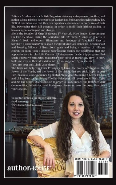 The Book will help you learn Principles & Laws, the Power of the Mind, the Power of the Words, and the Power of the Vision, that you could apply in your Life, Business, and experience Unlimited Abundance.Becoming a better leader, and Living from the inside out. The Key Principles will reveal how to Walk, Talk, and Act like Kings / Queens in Life, in order to Lead, Impact, and Influence your Communities, Industries, and Businesses. Pursuing your Purpose, Reaching your Destiny.