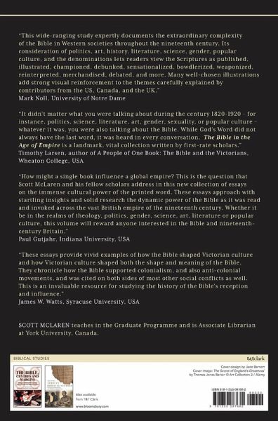 The nineteenth century was a time of titanic change. At the very heart of that change - driving it, confounding it, complicating it - was a singular book reputed to be utterly unchanging in its true and perfect expression. This book was the Bible. No other book could rival its ubiquity or cultural potency. Neither was any other book quite so divisive. Many revered it. Others deplored it. Still others used it for creative inspiration or borrowed its authority to bring about particular economic or political ends. But whatever status it enjoyed, whatever purpose it served, it was never far from the centre of Victorian discourse. The essays in this book explore how the Bible shaped and was shaped by the social and cultural forces at work during the nineteenth century -- forces that drove both scientific discovery and the colonial project, provoked unprecedented economic gain and condemned countless workers to urban poverty, gave birth to women's rights movements and reinforced traditional gender norms. Ultimately, all the essays in this book demonstrate one thing: that the nineteenth century emerges in its greatest clarity only when we approach it as the Victorians themselves approached it: through the lens of the Bible.