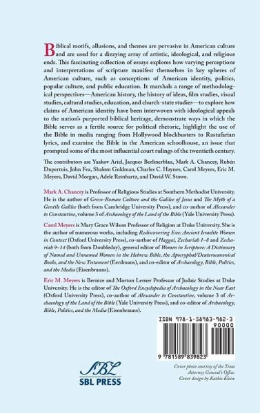 Biblical themes, pervasive in American culture, are utilized for many artistic, ideological, and religious ends. These essays explore perceptions and interpretations of scripture in key spheres of American culture, including politics, conceptions of American identity, popular culture, and public education.