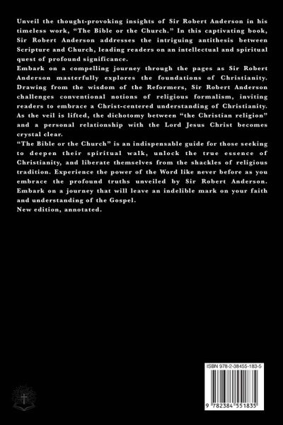 Unveil the thought-provoking insights of Sir Robert Anderson in his timeless work, "The Bible or the Church." In this captivating book, Sir Robert Anderson addresses the intriguing antithesis between Scripture and Church, leading readers on an intellectual and spiritual quest of profound significance.Embark on a compelling journey through the pages as Sir Robert Anderson masterfully explores the foundations of Christianity. Drawing from the wisdom of the Reformers, Sir Robert Anderson challenges conventional notions of religious formalism, inviting readers to embrace a Christ-centered understanding of Christianity. As the veil is lifted, the dichotomy between "the Christian religion" and a personal relationship with the Lord Jesus Christ becomes crystal clear."The Bible or the Church" is an indispensable guide for those seeking to deepen their spiritual walk, unlock the true essence of Christianity, and liberate themselves from the shackles of religious tradition. Experience the power of the Word like never before as you embrace the profound truths unveiled by Sir Robert Anderson. Embark on a journey that will leave an indelible mark on your faith and understanding of the Gospel.New edition, annotated.