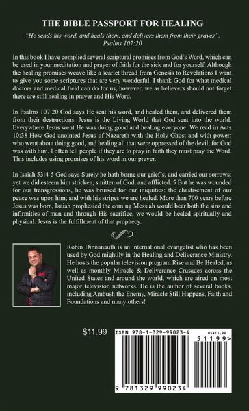 The Bible Passport for Healing was compiled out of my personal experience with every scriptures that is quoted in this book. The bible says in Joshua 1:8 Keep this Book of the Law always on your lips; meditate on it day and night, so that you may be careful to do everything written in it. Then you will be prosperous and successful. I pray as you meditate on every scripture that is mention in this Bible Passport, you will have a supernatural experience with God and receive your healing miraculously. The promises of God is Yea and Amen. God's word will never return void to him. So mediate on these scriptures and let God do the works of his promises.