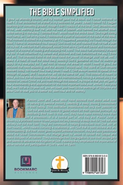 I grew up attending church, and my mother gave me a Bible, but I never bothered to read it. It sat untouched on a shelf in my bedroom for years. When I turned 19, I began searching for something greater, though I didn't realize it at the time. God, unbeknownst to me, was watching over me, and He sent a Gideon who handed me another Bible. While serving in the Navy, I decided that I would read the entire Bible. One night during boot camp, as I sat on my bunk, I discovered a plan of salvation in the back of the Bible. That moment is etched in my memory as if it happened yesterday. As I read through the Bible, I came to understand how deeply God loves me and realized that He had a plan for my life. It was then that I accepted Jesus Christ as my Lord and Savior and committed myself to a lifetime of reading and studying His Word. The Bible has profoundly shaped my life. It has influenced my values and priorities and has transformed the way I think and act. The timeless truths in the Bible have the power to change your life as well. I make it a habit to read the Bible daily, seeking God's guidance on how its teachings apply to my everyday life. I ask Him to reveal the areas in which I need to grow, the attitudes that need adjusting, and the actions I should take. The Word of God remains relevant today. No matter how many times I read it, God always seems to speak to me through its pages, and I believe He will do the same for you. This booklet is meant to show you how the 66 books of the Bible are interconnected, forming a unified story that centers on Jesus Christ. As you read through this booklet, my hope is that you will gain a new understanding and appreciation for the most important book ever written. I also pray that, like I did as a 19-year-old, you will open your heart to the teachings of Scripture and allow God to lead you to a better life, both now and for eternity.