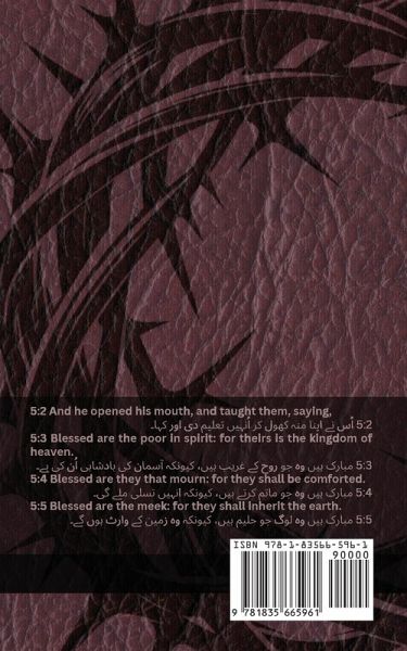5:2 And he opened his mouth, and taught them, saying, 5:2 اُس نے اپنا منہ کھول کر اُنہیں تعلیم دی اور کہا۔ 5:3 Blessed are the poor in spirit: for theirs is the kingdom of heaven. 5:3 مبارک ہیں وہ جو روح کے غریب ہیں، کیونکہ آسمان کی بادشاہی اُن کی ہے۔ 5:4 Blessed are they that mourn: for they shall be comforted. 5:4 مبارک ہیں وہ جو ماتم کرتے ہیں، کیونکہ انہیں تسلی ملے گی۔ 5:5 Blessed are the meek: for they shall inherit the earth. 5:5 مبارک ہیں وہ لوگ جو حلیم ہیں، کیونکہ وہ زمین کے وارث ہوں گے۔ 5:6 Blessed are they which do hunger and thirst after righteousness: for they shall be filled. 5:6 مبارک ہیں وہ جو راستبازی کے بھوکے اور پیاسے ہیں، کیونکہ وہ سیر ہو جائیں گے۔