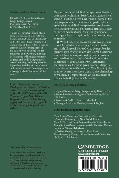 How can academic biblical interpretation fruitfully contribute to Christian belief and living in today's world? This book offers a synthesis of some of the best in pre-modern, modern and post-modern approaches to biblical interpretation, and locates the discipline within a self-critical Trinitarian rule of faith, where historical criticism, systematic theology, ethics, and spirituality are constructively combined. Moberly reclaims biblical and patristic principles of what is necessary for meaningful and truthful speech about God to be possible; he engages with contemporary ideological suspicions directed both to scripture and to its interpreters; and he offers an account of God and humanity in relation to both Old and New Testaments. Hermeneutical theory is given practical shape in in-depth studies of Genesis 22 ('The Akedah'), the Journey to Emmaus (Luke 24), and the Christology of Matthew's Gospel, studies which should be of interest to both Jews and Christians.