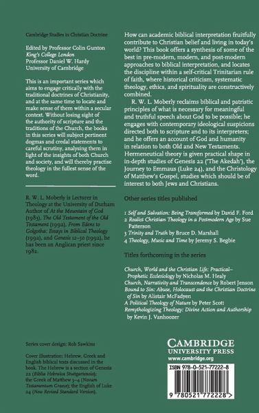 How can academic biblical interpretation fruitfully contribute to Christian belief and living in today's world? This book offers a synthesis of some of the best in pre-modern, modern and post-modern approaches to biblical interpretation, and locates the discipline within a self-critical Trinitarian rule of faith, where historical criticism, systematic theology, ethics, and spirituality are constructively combined. Moberly reclaims biblical and patristic principles of what is necessary for meaningful and truthful speech about God to be possible; he engages with contemporary ideological suspicions directed both to scripture and to its interpreters; and he offers an account of God and humanity in relation to both Old and New Testaments. Hermeneutical theory is given practical shape in in-depth studies of Genesis 22 ('The Akedah'), the Journey to Emmaus (Luke 24), and the Christology of Matthew's Gospel, studies which should be of interest to both Jews and Christians.