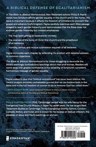 The Bible vs. Biblical Womanhood by New Testament scholar, Philip B. Payne, presents clear and understandable interpretations of the most important passages in the Bible on gender differences that show how Scripture affirms gender equality.