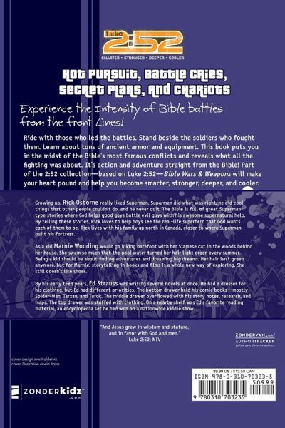 The real-life exploits of the Bible come alive in Bible Wars and Weapons. Kids 8 and up have a passport to the front lines of battles in the Bible--from the famous takedown of Jericho and wars against Israel's enemies to Abraham's daring rescue of Lot and other lesser-known yet exciting clashes. Each encounter comes to life with lots of large black-and-white illustrations and kid-friendly explanations that break down the battle, the heroes involved, the weapons used, and what it really might have been like for the people involved. Exciting battles, courageous leaders, and surprising heroes ... we read about them all the time in adventure books and see them in thrilling movies. But some of the most interesting clashes and stories can actually be found in the Bible if you know what to look for. In Bible Wars and Weapons, fifteen battles are presented in exciting detail, in language that makes the real emotions and stakes come alive for kids. With detailed illustrations, battle maps, and information on the people involved, readers will see the battles in the Bible in a new light--and become smarter when it comes time to face the battles in their own lives. Bible Wars and Weapons: contains biblically sound information in language kids can relate to works as an age-appropriate reference guide for any child 8 to 12 learning more about the Bible contains large text and an open page design, along with lots of detailed illustrations, making it perfect for reluctant readers is part of the 2:52 series of books, which focuses on becoming more like Jesus as described in Luke 2:52