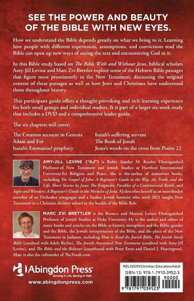 Scholars show how Jews and Christians read the same texts differently. This participant guide introduces the main text and further Scripture commentary and reflection questions. It, along with the leader guide and DVD, is everything needed for an engaging study for your small group. In this Bible study based on their book, The Bible With and Without Jesus, esteemed Bible scholars and teachers Amy-Jill Levine and Marc Zvi Brettler take readers on a guided tour of the most popular Hebrew Bible passages quoted in the New Testament to show what the texts meant in their original contexts and then how Jews and Christians, over time, understood those same texts. Passages include the creation of the world, the role of Adam and Eve, the Suffering Servant of Isaiah, the book of Jonah, and Psalm 22, whose words, "My God, my God, why have you forsaken me," Jesus quotes as he dies on the cross. Comparing various interpretations - historical, literary, and theological - of each ancient text, Levine and Brettler offer deeper understandings of the original narratives and their many afterlives. They show how the text speaks to different generations under changed circumstances, illuminating the Bible's ongoing significance. By understanding the depth and variety by which these passages have been, and can be, understood, The Bible With and Without Jesus does more than enhance our religious understandings; it helps us to see the Bible as a source of inspiration for any and all readers.