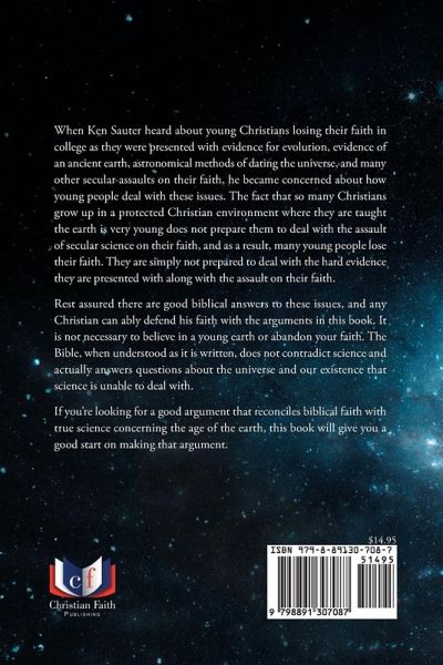When Ken Sauter heard about young Christians losing their faith in college as they were presented with evidence for evolution, evidence of an ancient earth, astronomical methods of dating the universe, and many other secular assaults on their faith, he became concerned about how young people deal with these issues. The fact that so many Christians grow up in a protected Christian environment where they are taught the earth is very young does not prepare them to deal with the assault of secular science on their faith, and as a result, many young people lose their faith. They are simply not prepared to deal with the hard evidence they are presented with along with the assault on their faith. Rest assured there are good biblical answers to these issues, and any Christian can ably defend his faith with the arguments in this book. It is not necessary to believe in a young earth or abandon your faith. The Bible, when understood as it is written, does not contradict science and actually answers questions about the universe and our existence that science is unable to deal with. If you're looking for a good argument that reconciles biblical faith with true science concerning the age of the earth, this book will give you a good start on making that argument.
