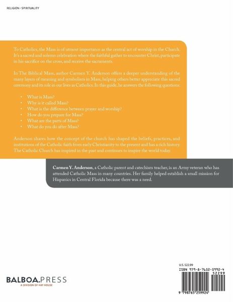 To Catholics, the Mass is of utmost importance as the central act of worship in the Church. It's a sacred and solemn celebration where the faithful gather to encounter Christ, participate in his sacrifice on the cross, and receive the sacraments. In The Biblical Mass, author Carmen Y. Anderson offers a deeper understanding of the many layers of meaning and symbolism in Mass, helping others better appreciate this sacred ceremony and its role in our lives as Catholics. In this guide, he answers the following questions: ¿ What is Mass? ¿ Why is it called Mass? ¿ What is the difference between prayer and worship? ¿ How do you prepare for Mass? ¿ What are the parts of Mass? ¿ What do you do after Mass? Anderson shares how the concept of the church has shaped the beliefs, practices, and institutions of the Catholic faith from early Christianity to the present and has a rich history. The Catholic Church has inspired in the past and continues to inspire the world today.