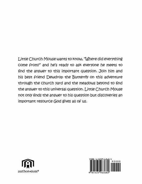 Little Church Mouse wants to know, "Where did everything come from?" and he's ready to ask everyone he meets to find the answer to this important question. Join him and his best friend Dewdrop the Butterfly on this adventure through the church yard and the meadows beyond to find the answer to this universal question. Little Church Mouse not only finds the answer to his question but discoveries an important resource God gives all of us.