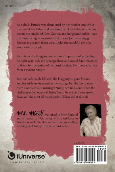 As a child, Patricia was abandoned by her mother and left in the care of her father and grandmother. Her father is called to war in the jungles of New Guinea, and her grandmother-not the most loving woman-refuses to care for the young girl. Patricia is put into foster care, under the watchful eye of a kind, elderly couple. Her life in the Haggerty home is one of peace and gardening. At eight years old, she is happy there and would have remained so if not for the arrival of her cruel mother. Her mother suffers from a violent temper. Patricia's safe, stable life with the Haggertys is gone forever, and her trials are increased as the years go by. She has to meet them alone; a trial; a marriage; raising her kids alone. Then the challenge of her own well being has to be met and conquered. How will she meet all the obstacles? When will it all end?