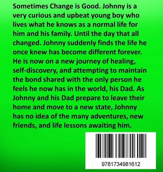 Sometimes Change is Good. Johnny is a very curious and upbeat young boy who lives what he knows as a normal life for him and his family. Until the day that all changed. Johnny suddenly finds the life he once knew has become different forever. He is now on a new journey of healing, self-discovery, and attempting to maintain the bond shared with the only person he feels he now has in the world, his Dad. As Johnny and his Dad prepare to leave their home and move to a new state, Johnny has no idea of the many adventures, new friends, and life lessons awaiting him.