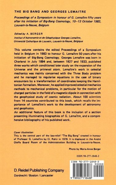 ix Fully aware of the work accomplished by Mgr. Lemattre, His Majesty King Baudouin enhanced this occasion by placing it under His High Patronage. His Holiness the Pope Jean-Paul II accepted to testify his paternel solicitude for the work of the scientists participating in the symposium. The President of the pontifical Academy of Sciences and the Director of the Vatican Observatory transmitted their fervent wishes for the full success of the symposium. Numerous other eminent people graced the ceremony with their patronage. The academic opening, the addresses of which are pub_lished by the Revue des Questions Scientifiques de Bruxelles , was presided over by Mgr. E. Massaux, Rector of the Catholic University of Louvain who spoke about Lemattre, the University professor. Professor Ch. de Duve, Nobel Prize winner in Medicine, called to mind the role of Lemattre as President of the Pontifical Academy of Sciences; the Emeritus Professor O. Godart, founder of the Institute, recalled the life and work of Mgr. Lemattre; Professor A. Deprit, Senior Mathematician at the National Bureau of Standards, spoke about Lemattre' s work in celestial mechanics and his keen interest for computers; Professor J. Peebles, Professor of Physics at Princeton University, summarized the fundamental contributions of Lemattre to modern cosmology. The attendance of more than three hundred people was enhanced by the presence of Mgr. A. Pedroni, Papal Nuncio, Mr Ph. Maystadt, Minister of Research Policy, Mr E. Knoops, Secretary of State, Mr Y. de Wasseige, Senator, Professor E.