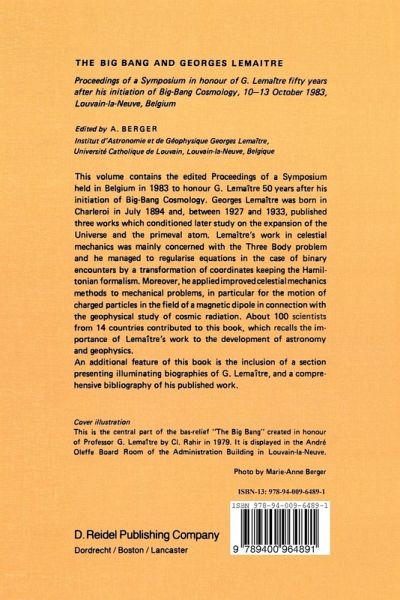 ix Fully aware of the work accomplished by Mgr. Lemattre, His Majesty King Baudouin enhanced this occasion by placing it under His High Patronage. His Holiness the Pope Jean-Paul II accepted to testify his paternel solicitude for the work of the scientists participating in the symposium. The President of the pontifical Academy of Sciences and the Director of the Vatican Observatory transmitted their fervent wishes for the full success of the symposium. Numerous other eminent people graced the ceremony with their patronage. The academic opening, the addresses of which are pub_lished by the Revue des Questions Scientifiques de Bruxelles , was presided over by Mgr. E. Massaux, Rector of the Catholic University of Louvain who spoke about Lemattre, the University professor. Professor Ch. de Duve, Nobel Prize winner in Medicine, called to mind the role of Lemattre as President of the Pontifical Academy of Sciences; the Emeritus Professor O. Godart, founder of the Institute, recalled the life and work of Mgr. Lemattre; Professor A. Deprit, Senior Mathematician at the National Bureau of Standards, spoke about Lemattre' s work in celestial mechanics and his keen interest for computers; Professor J. Peebles, Professor of Physics at Princeton University, summarized the fundamental contributions of Lemattre to modern cosmology. The attendance of more than three hundred people was enhanced by the presence of Mgr. A. Pedroni, Papal Nuncio, Mr Ph. Maystadt, Minister of Research Policy, Mr E. Knoops, Secretary of State, Mr Y. de Wasseige, Senator, Professor E.