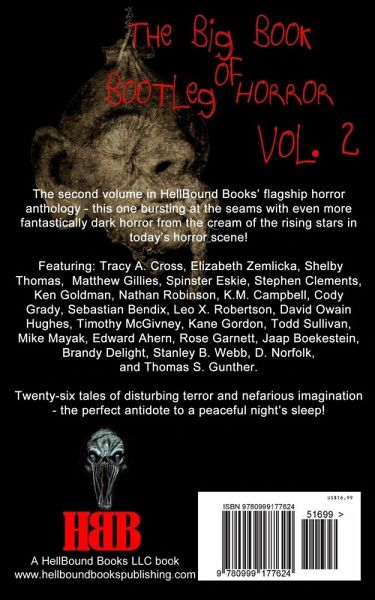 The second in HellBound Books' flagship horror anthology - this one bursting at the seams with even more fantastically dark horror from the cream of the rising stars in today's horror scene! Featuring: Tracey A. Cross, Charles Tillerman, Elizabeth Zemlicka, Matthew Gillies, Spinster Essie, Stephen Clements, Ken Goldman, Nathan Robinson, K.M. Campbell, Cody Grady, Sebastian Bendix, Leo X. Robertson, David Owain Hughes, Timothy McGivney, Kane Gordon, Todd Sullivan, Mike Mayak, Edward Ahern, Rose Garnett, Jaap Bolkestein, Brandy Delight, Stanley B. Webb, D. Norfolk, Thomas Gunther.