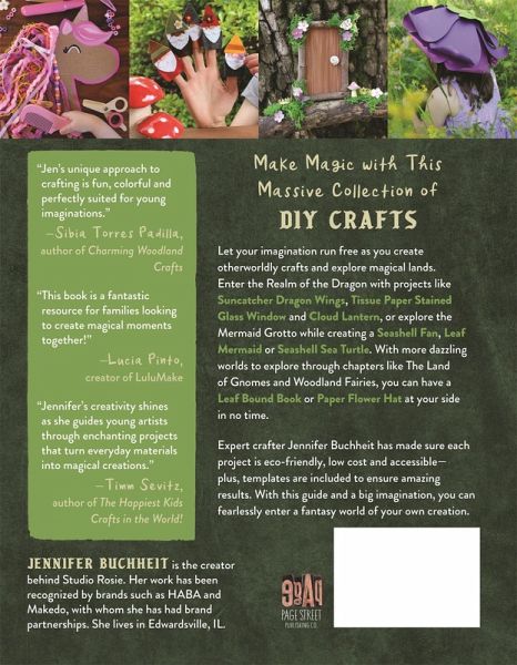 Make Magic with This Massive Collection of DIY Crafts Let your imagination run free as you create otherworldly crafts and explore magical lands. Enter the Realm of the Dragon with projects like Suncatcher Dragon Wings, Tissue Paper Stained Glass Window and Cloud Lantern, or explore the Mermaid Grotto while creating a Seashell Fan, Leaf Mermaid or Seashell Sea Turtle. With more dazzling worlds to explore through chapters like The Land of Gnomes and Woodland Fairies, you can have a Leaf Bound Book or Paper Flower Hat at your side in no time. Expert crafter Jennifer Buchheit has made sure each project is eco-friendly, low cost and accessible-plus, templates are included to ensure amazing results. With this guide and a big imagination, you can fearlessly enter a fantasy world of your own creation.
