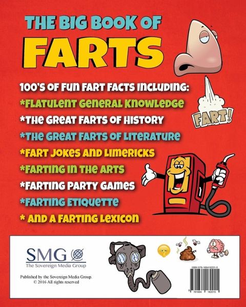 At Last, Everything you ever wanted to know about FARTS! This wonderfully quirky, laugh out loud book is the PERFECT GIFT for FART lovers of all ages... Because a fart is always funny!! Full of fun and fascinating fart facts, fart jokes & limericks, a fart lexicon, fart foods, fart fixes, party farts, farts in the arts, the great farts of history and much much more "The Big Book of Farts" is the ultimate connoisseur's guide to all things flatulent - If you are ready for a hilarious and informative trip through the magical word of the bottom belch, then read on!!! You will learn 100's of fun fart facts as well as finding out all about the great farts of history, farting in the arts, the different varieties of farts, fart jokes, fart limericks, 100's of different words for a fart.... the fun fart festival goes on and on... Endless fun for kids from 8 to 80