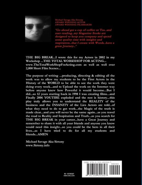 ...this Play/TV-Pilot/Short Film script truly allows you to understand the REALITY of the business and the INSANITY of the Lies Actors are told...of what they need to do to get work...the Magic of the truth is made clear...and you will never be the same again...as you travel the road to Reality and Inspiration and Truth...as you search for THE BIG BREAK in your career...have a Great Journey and remember to share it with all your friends and anyone you know would need this insight...so you could be the hero in all their lives...as I have tried to do for all my students and friends...AMEN