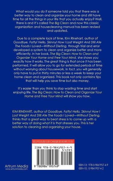 What would you do if someone told you that there was a better way to clean and organize your home and still have time for all the things in your life that you actually enjoy? Well, there is and it's called The Big Clean and now this classic organization and housecleaning manual has been revised and updated. Due to a complete lack of time, Kim Rinehart, author of Goodbye, Fatty! Hello, Skinny! How I Lost Weight And Still Ate The Foods I Loved-Without Dieting, through trial and error developed a system to clean and organize better and more efficiently. In her book, The Big Clean: How to Clean and Organize Your Home and Free Your Mind, she shows you exactly how it works. The great thing is that once it has been performed, it will allow you to go for extended periods of time without worrying about housework. In fact, you will generally only have to put in thirty minutes or less a week to keep your home clean and organized. This book not only contains tips that will help you save time but also money. It's easier than you think to stop wasting time and start enjoying life. The Big Clean: How to Clean and Organize Your Home and Free Your Mind will show you how.