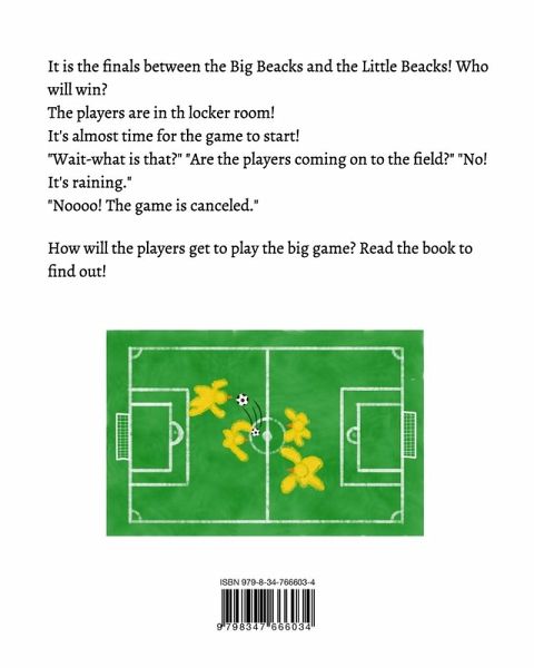 It is the finals between the Big Beacks and the Little Beacks! Who will win? The players are in the locker room! It's almost time for the game to start! "Wait-what is that?" "Are the players coming on to the field?" "No! It's raining." "Noooo! The game is canceled." How will the players get to play the big game? Read the book to find out!