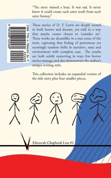 "The story missed a beat. It was sad. It never knew it could create such utter truth from such utter fantasy." These stories of D. F. Lewis are deeply rooted in both horror and dreams, yet told in a way that maybe comes closest to 'outsider art'. These works are dreamlike in a true sense of the term, capturing that feeling of portentous yet seemingly random shifts in narrative, state and environment with complete ease. The results are both subtly unnerving in ways few horror stories manage and also demonstrate the author's unique writing style. This collection includes an expanded version of the title story plus four smaller pieces.