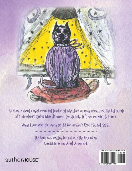 This story is about a mischievous but lovable cat who goes on many adventures. The big purple cat's adventures started when its owner, the old lady, left him and went to France. Wanna know what the lovely cat did for survival? Read this, and dig in.
