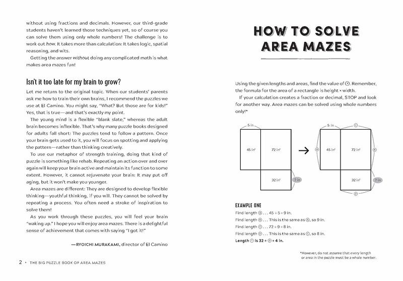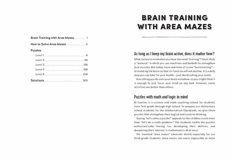 Naoki Inaba has invented over 400 new types of puzzle. He also writes sudoku and other popular puzzles for magazines in Japan, where he has published several books of area mazes for children and adults. Ryoichi Murakami is the founder and CEO of El Camino, a premier cram school in Tokyo. Many of his students go on to elite schools such as the University of Tokyo and compete in the International Mathematical Olympiad. In addition to teaching at El Camino, Murakami is active in publishing, works as a puzzle maker, and writes questions for the Olympiad.
