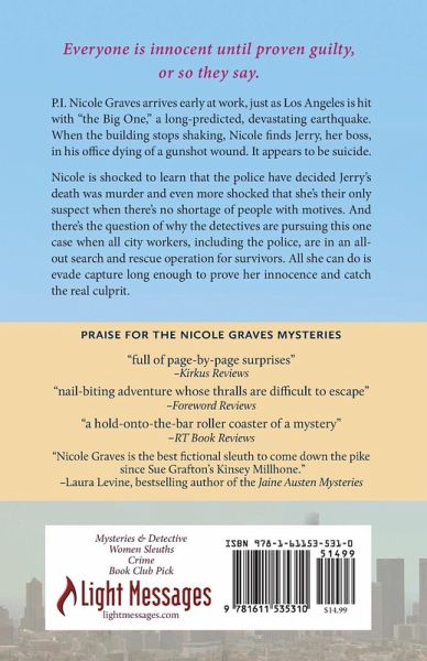 Everyone is innocent until proven guilty, or so they say. P.I. Nicole Graves arrives early at work, just as Los Angeles is hit with "the Big One," a long-predicted, devastating earthquake. When the building stops shaking, Nicole finds Jerry, her boss, in his office dying of a gunshot wound. It appears to be suicide. Nicole is shocked to learn that the police have decided Jerry's death was murder and even more shocked that she's their only suspect when there's no shortage of people with motives. And there's the question of why the detectives are pursuing this one case when all city workers,…mehr