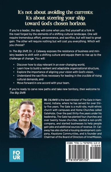 It's not about avoiding the currents; it's about steering your ship toward God's chosen horizon. If you're a leader, the day will come when you find yourself at a fork in the road forged by the elements of a shifting cultural landscape. One will require tremendous effort, perseverance, and sacrifice, but will lead to great gain. The other will require nothing but will cost you everything. Which will you choose? In The Big Shift, Dr. J. Calaway exposes the resistance of business and ministry leaders to shift with a shifting culture and equips them to rise up to the challenge of change. You will: Discover how to stay relevant in an ever-changing world, Learn how to build a resilient and adaptable organizational structure, Explore the importance of aligning your vision with God's vision, Understand the sacrifices necessary for leading in the crucible of rising cultural demands, and Move forward in one accord with your team. If you're ready to carve new paths and take new territory, then welcome to The Big Shift!