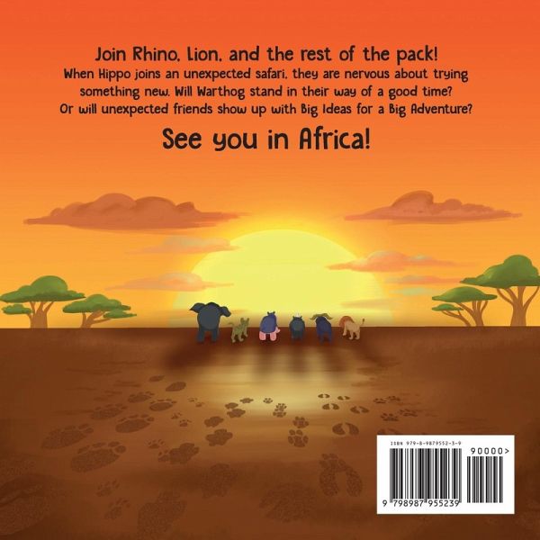 Roaming with Safari friends! Learn mental health coping skills for emotions and feelings The Big Six teaches coping skills through the adventure of a nervous Hippo who wants to join Safari. Leopard teaches how to communicate emotion with color. Lion teaches how to tense and relax their paw. Elephant, Buffalo, and Rhino join in sharing their pro tip. The Big Six includes: Emotional Expression through Color: Leopard guides communicating feelings using colors, making emotions relatable and understandable. Mindfulness Techniques: Lion introduces the simple yet effective practice of tensing and relaxing. Teamwork and Support: Each animal shares their unique strategies, presenting valuable "pro tips" that empower children to face challenges together and support one another. Perfect for children aged 2-8, The Big Six invites little ones on a safari adventure alongside helpful animal friends. Dive into the Big Six Safari book series and discover the joy of learning with titles like Let's Go, Buffalo! and Louder, Lion!