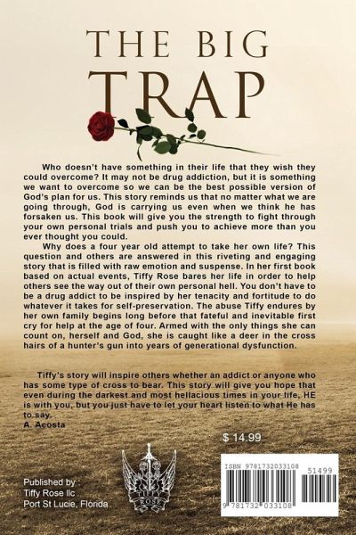 What happens when a hard working young Southern Belle climbing the corporate ladder at the forefront of the computer revolution gets trapped in the dark underworld of drugs, crime, and prostitution? This is a true story of Tiffy Rose Baker's long journey from the hot west Texas plains and Sunday Church picnics to the executive boardroom and the shimmering nightlife of South Florida. Follow her as she boards the bus fleeing abuse and alienation in the dusty ranch country in pursuit of shattering the glass ceiling in a male dominated business world. Dedication and hard work propel her up but naivety and misplaced trust lead her into a darkness from which any escape may be fatal. The Big Trap is a tense and thought provoking examination of the secretive world of drugs and vice, and the high price success can extract from the unsuspecting. The Big Trap... Just one last High is the voice of one but the story of many.