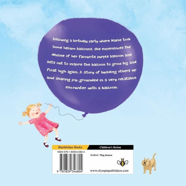 Following a birthday party where Maeve took home helium balloons, she experiences the decline of her favourite purple balloon and sets out to inspire the balloon to grow big and float high again. A story of building others up and sharing joy, grounded in a very relatable encounter with a balloon.