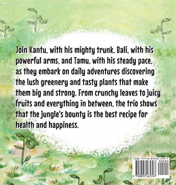 Join Kantu, the curious elephant with his mighty trunk, Bali, the mischievous monkey with his powerful arms, and Tamu, the wise tortoise with his steady pace, as they take young readers on a vibrant journey through the jungle. Each day is an adventure as the trio explores the wonders of their lush home, uncovering the delicious treasures nature provides. From the crisp crunch of emerald leaves to the sweet burst of golden fruits, they show how eating fresh, wholesome foods helps them grow strong, energetic, and happy. Along the way, Kantu, Bali, and Tamu teach valuable lessons about how they grow big and strong and live long healthy lives through the joy of healthy living. With every leaf, berry, and flower they encounter, the jungle comes alive in a colorful symphony of life, inspiring kids to embrace curiosity and appreciate the natural world. Encourage your children to incorporate more fruits and veggies in their everyday diets.