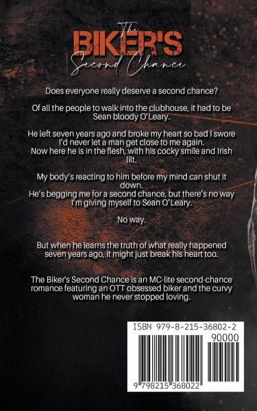 Does everyone really deserve a second chance? Of all the people to walk into the clubhouse, it had to be Sean bloody O'Leary. He left seven years ago and broke my heart so bad I swore I'd never let a man get close to me again. Now here he is in the flesh, with his cocky smile and Irish lilt. My body's reacting to him before my mind can shut it down. He's begging me for a second chance, but there's no way I'm giving myself to Sean O'Leary. No way. But when he learns the truth of what really happened seven years ago, it might just break his heart too. The Biker's Second Chance is an MC-lite, second-chance romance featuring an OTT obsessed biker and the curvy woman he never stopped loving. Authors Note: The Biker's Second Chance is a short novella that can be read in about two hours. If you love a quickie, then dive on in! Word count: Approx. 14k words