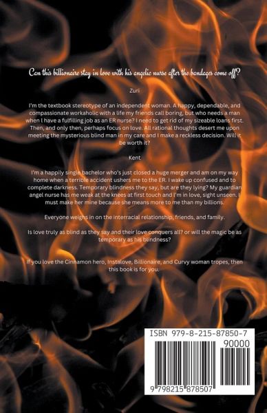 Can this billionaire stay in love with his angelic nurse after the bandages come off? Zuri I'm the textbook stereotype of an independent woman. A happy, dependable, and compassionate workaholic with a life my friends call boring, but who needs a man when l have a fulfilling job as an ER nurse? I need to get rid of my sizeable loans first. Then, and only then, perhaps focus on love. All rational thoughts desert me upon meeting the mysterious blind man in my care and I make a reckless decision. Will it be worth it? Kent I'm a happily single bachelor who's just closed a huge merger and am on my way home when a terrible accident ushers me to the ER. I wake up confused and to complete darkness. Temporary blindness they say, but are they lying? My guardian angel nurse has me weak at the knees at first touch and I'm in love, sight unseen. I must make her mine because she means more to me than my billions. Everyone weighs in on the interracial relationship, friends, and family. Is love truly as blind as they say and their love conquers all? or will the magic be as temporary as his blindness? If you love the Cinnamon hero, Instalove, Billionaire, and Curvy woman tropes, then this book is for you.